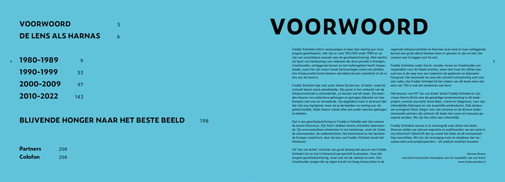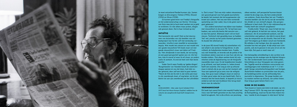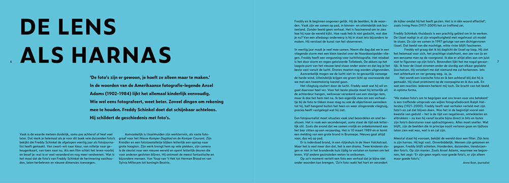 Commissioned by Aerie Publishers, Garage was responsible for the design and layout of the book Freddy Schinkel: 40 jaar fotojournalist (Freddy Schinkel: 40 Years of Photojournalism).