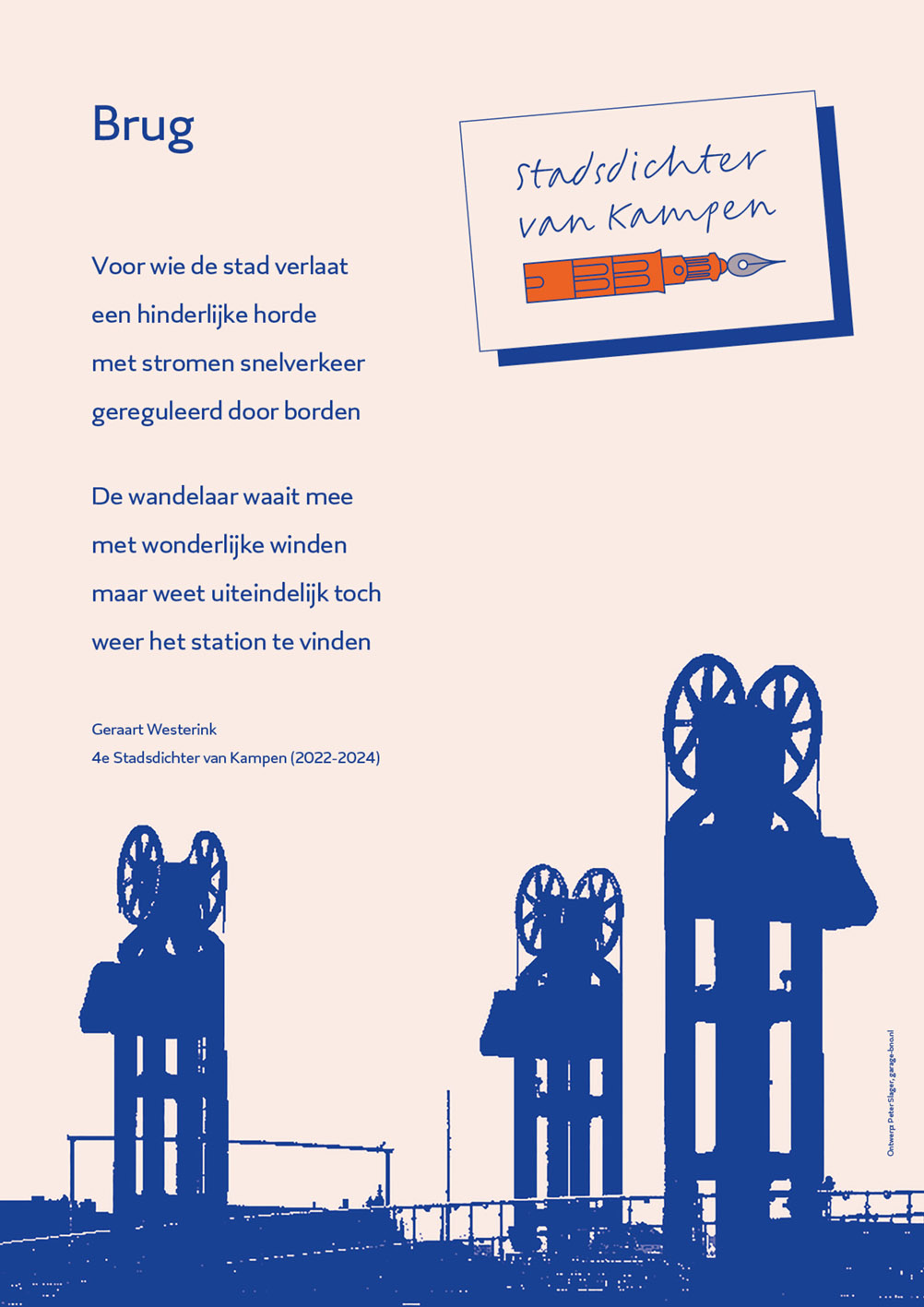 Garage designed the visual identity for the Stadsdichter van Kampen (City poet of Kampen), including a unique logo and a thoughtfully crafted layout for presenting the poems, with the Lasso typeface, designed by Peter Slager, also being used.