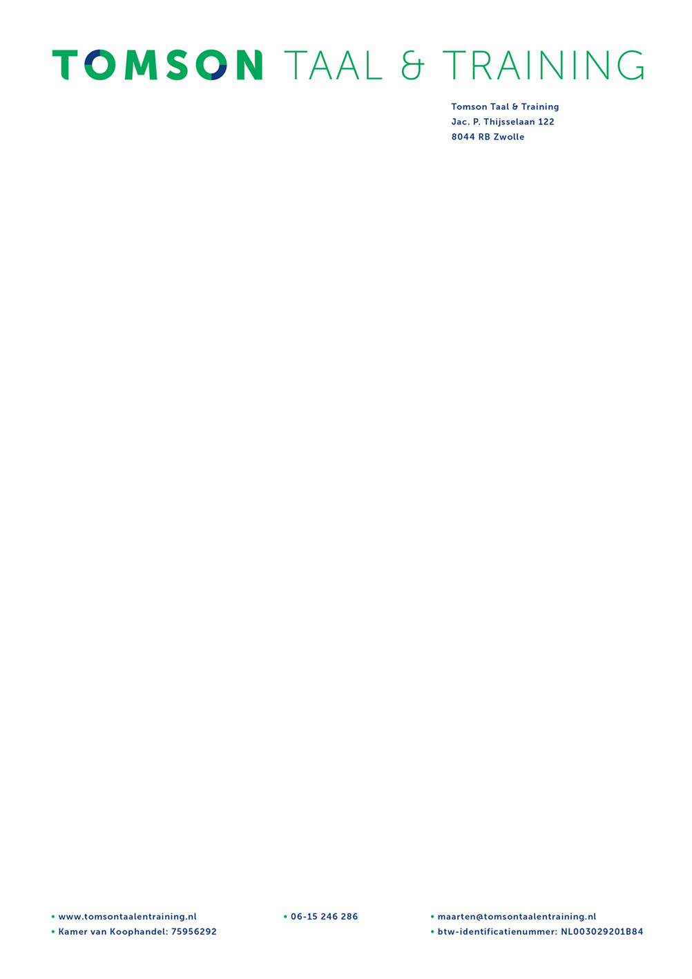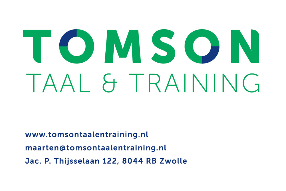 For Tomson Taal & Training, Garage developed a complete visual identity and a range of communication materials. The logo features blue accents that suggest movement. Since the name visually breaks into tom and son, the two o’s create a flowing connection — keeping the brand in motion, both literally and figuratively. The logo captures the essence of what Tomson does: improving business communication through language training that truly gets things moving. An animated GIF was also created, bringing the o’s to life in motion.
